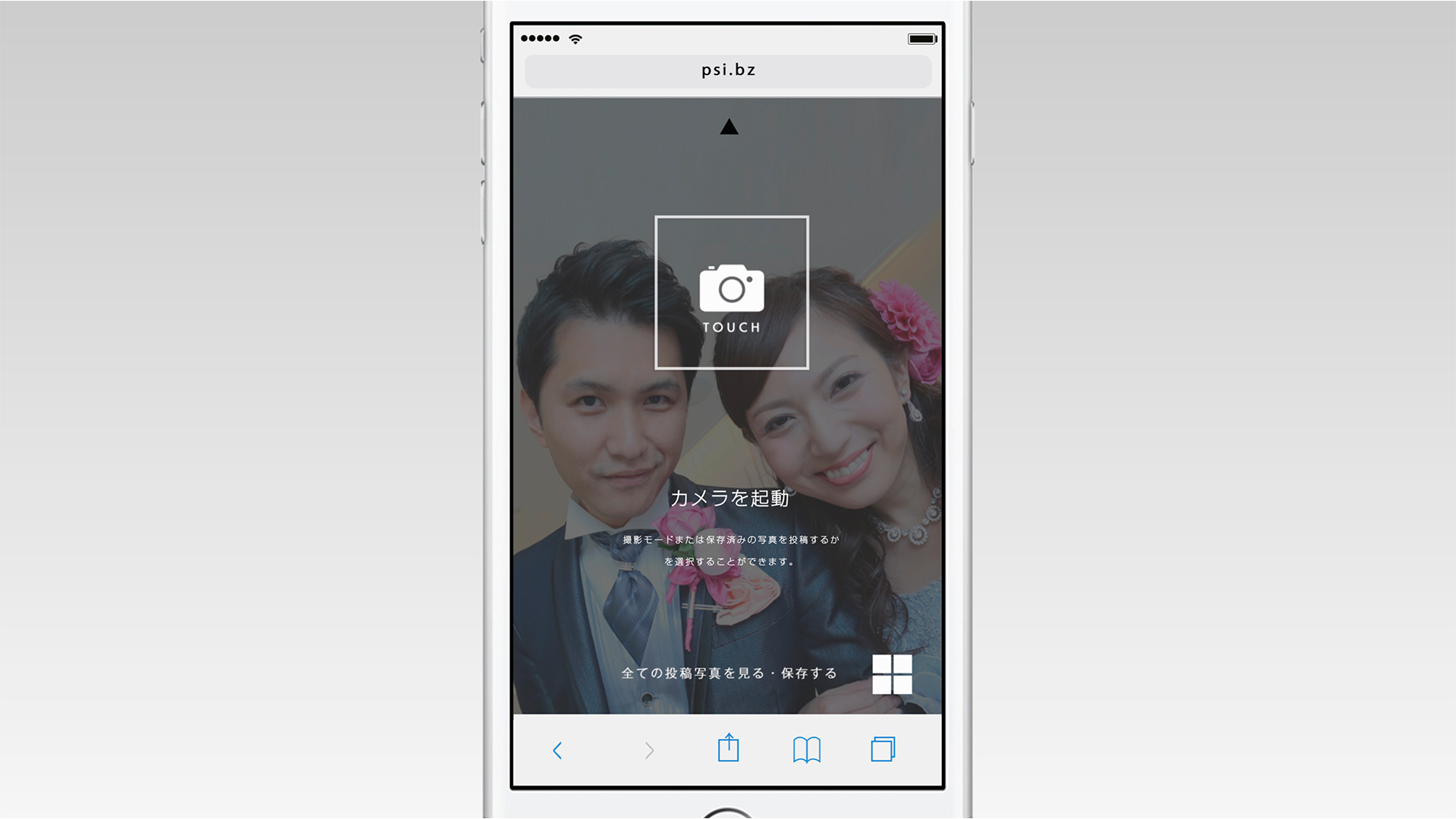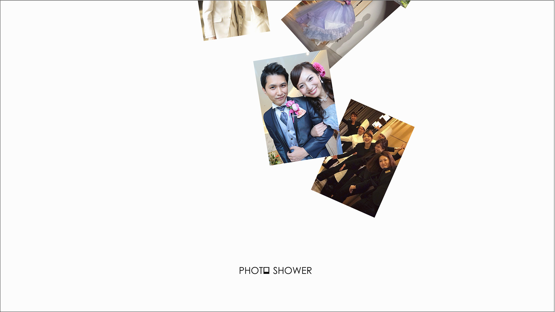 フォトシャワーのフィナーレは、集まった投稿写真でハートモザイク&ハートのモチーフ表示し、新郎新婦様から列席者の皆様へ「感謝の締めくくり演出」が可能です。